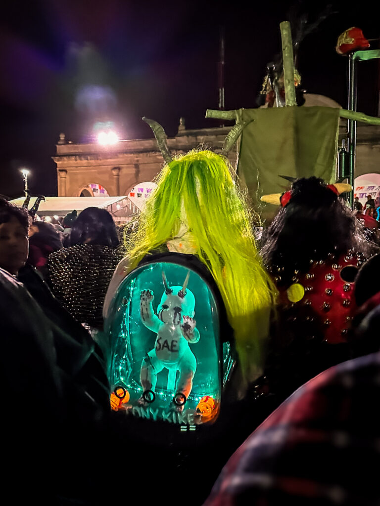 The city was alive in every sense. Streets strung with colourful papel picado, brass bands weaving through the crowds, and altars and every home, shop and street corner. One night I found myself in San Etla, surrounded by mezcal, dancers, and a man playing a tuba literally on fire. Another night, costumes so elaborate and surreal they felt like something from a dream.